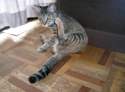 みなとがいすによっかかって毛づくろいしてたので撮ったらこんなポーズにwww